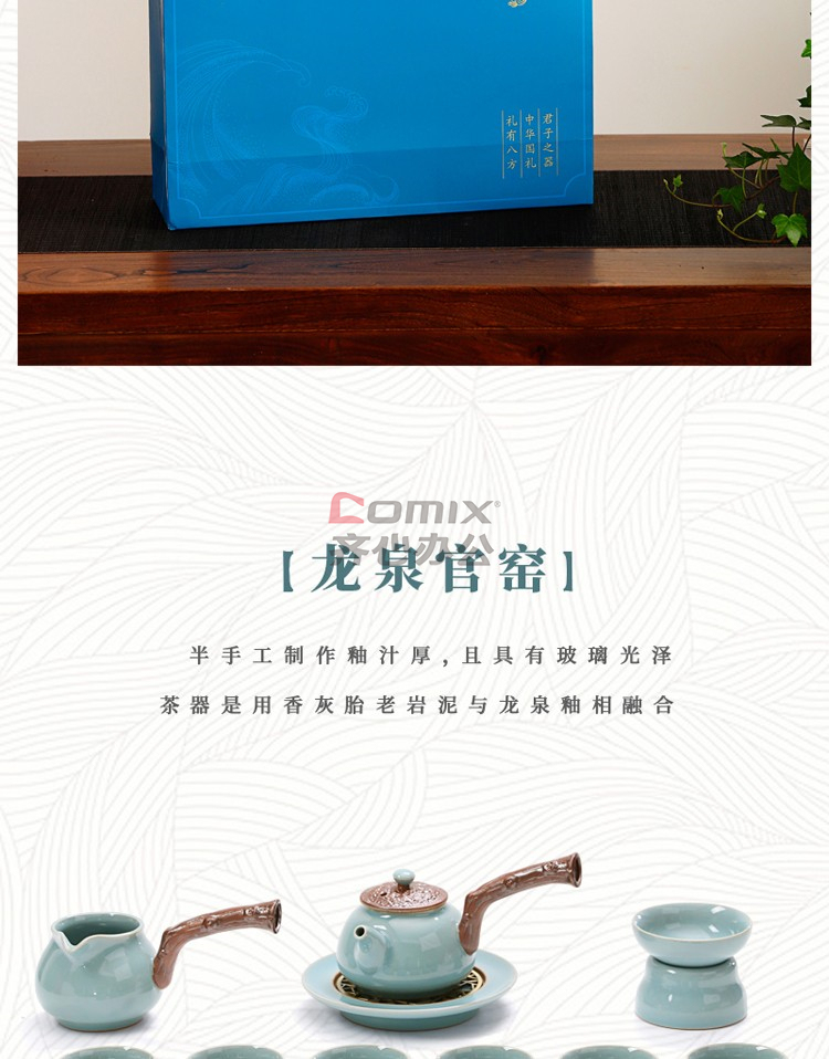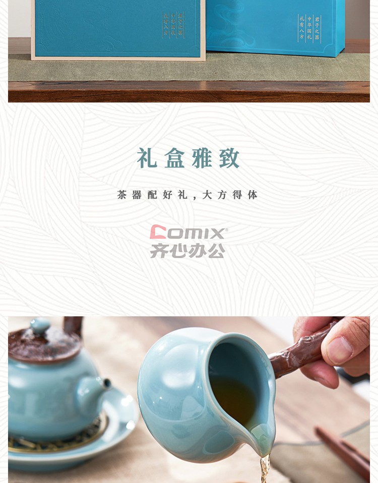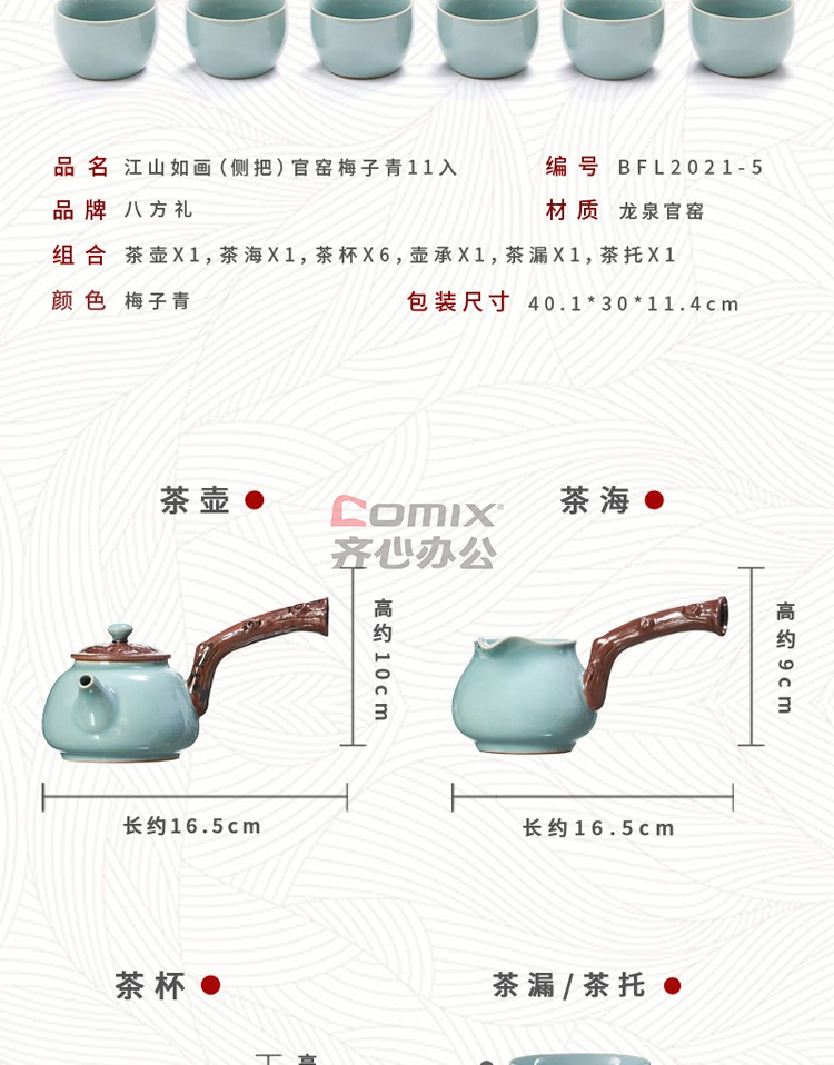八方礼 BFL2021-5 江山如画(侧把)官窑梅子青11入茶具套装(单位:个)