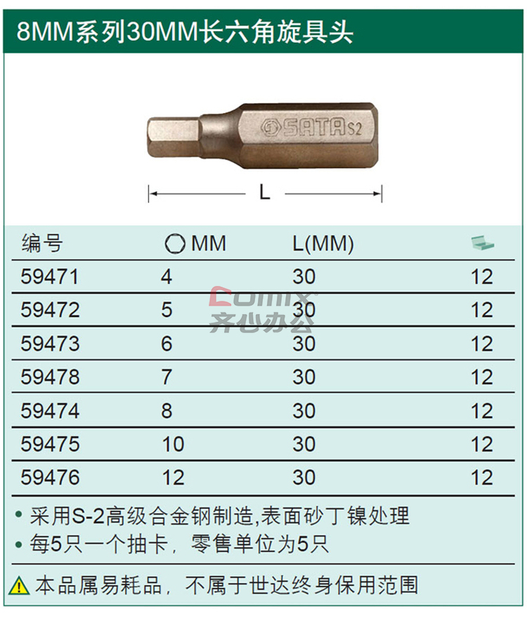 世达(SATA) 59472 世达(SATA) 59472 5件套8MM系列30MM长六角旋具头5MM(单位:套) (单位:套)