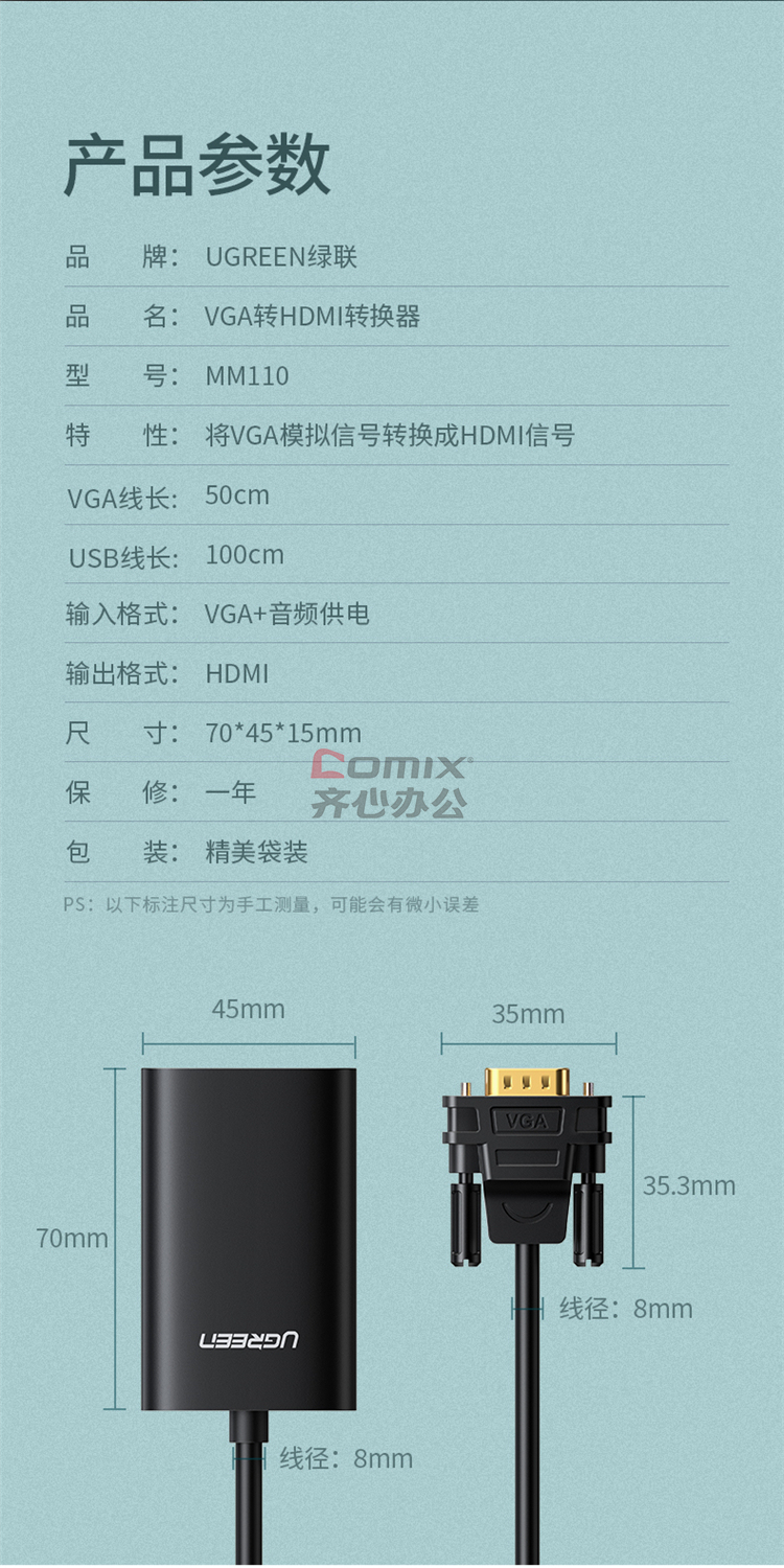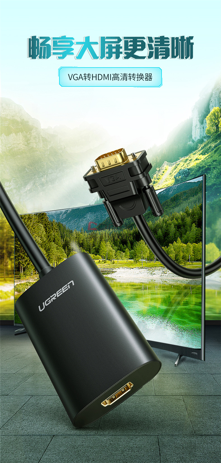 商品名称:绿联 40264 VGA转HDM转换器 黑色(单位:个)