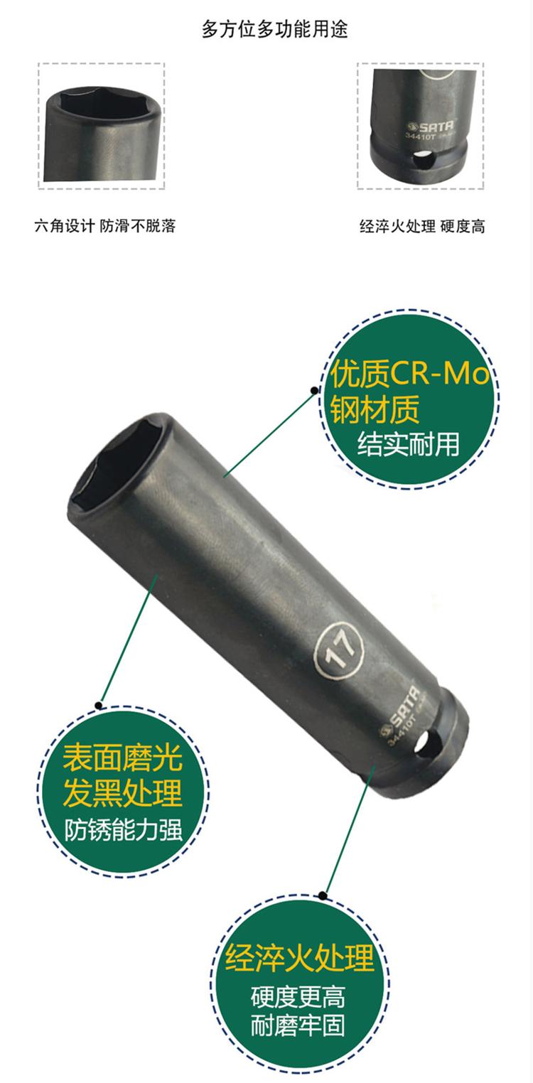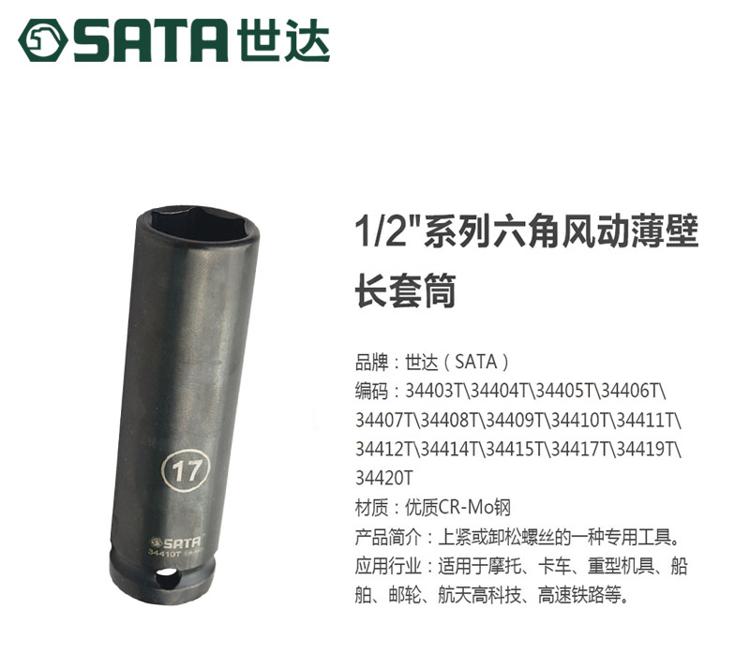 商品名称:SATA/世达 1/2\"系列六角风动薄壁长套筒13MM 34406T 单位:套