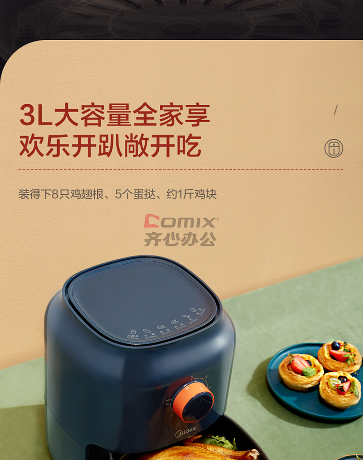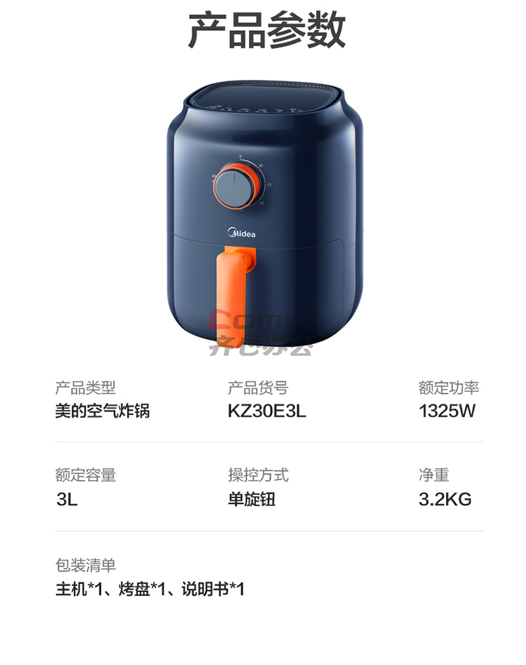 商品名称:美的 KZ30E3L 空气炸锅 3L 蓝色 单位:台