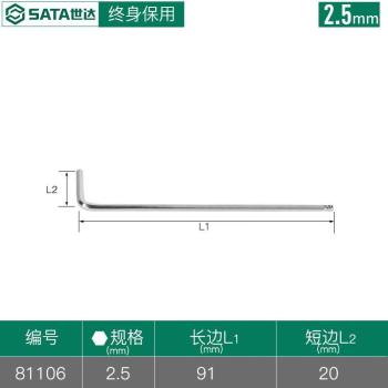 商品名称:扳手 世达/SATA 81106 内六角扳手 铬钒合金钢 1