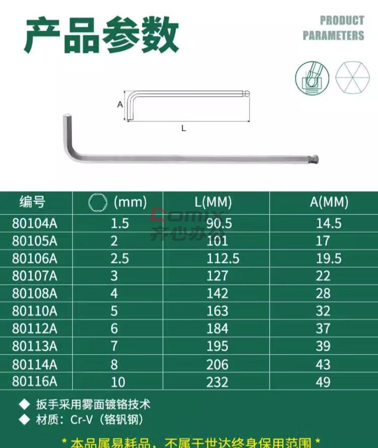 商品名称:扳手 世达/SATA 80105A 内六角扳手 铬钒合金钢 1