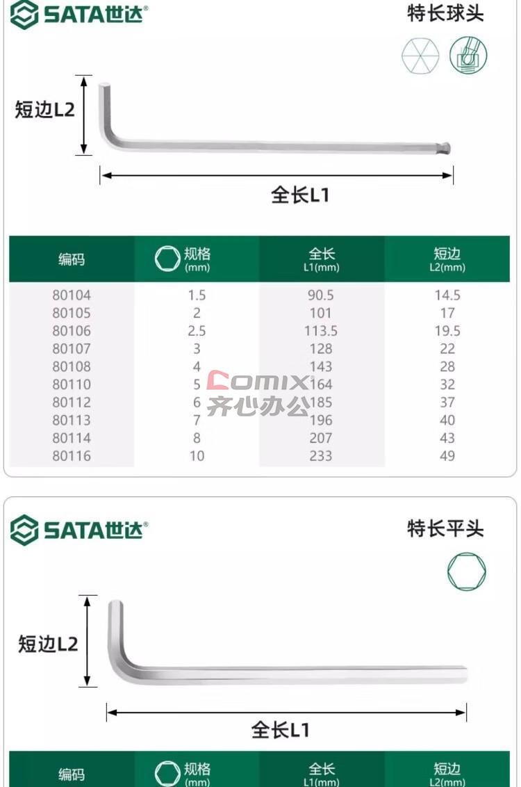 扳手 世达/SATA 82306A 内六角扳手 铬钒合金钢 1