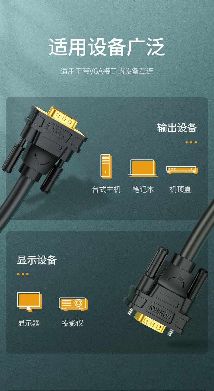 - 商品名称:绿联 UGREEN 11633 VGA线 VGA3+6工程线 投影仪线 电脑显示器连接线 笔记本电视高清视频线 10米 黑色