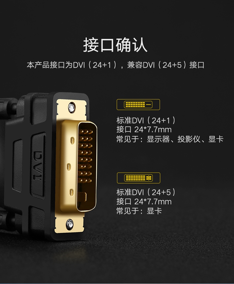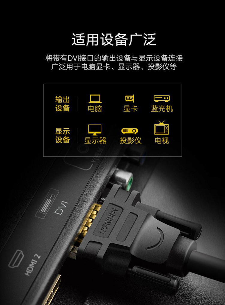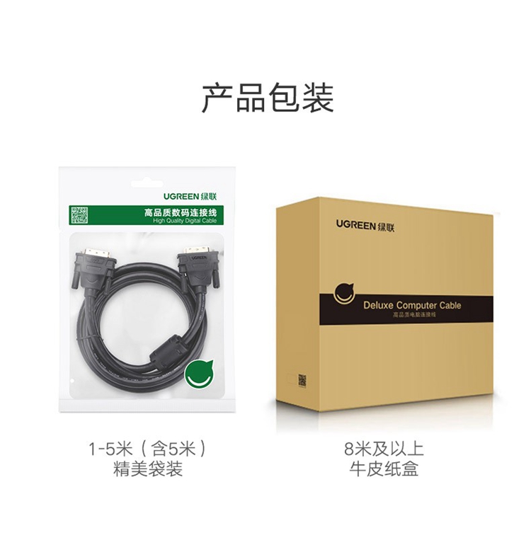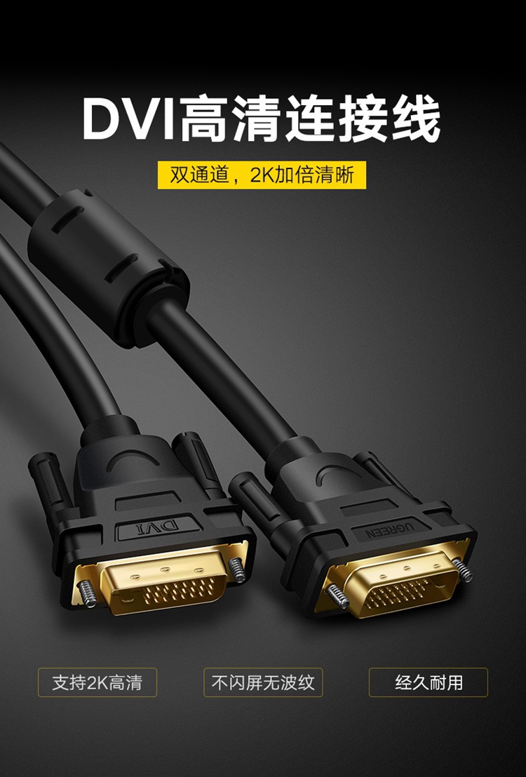 商品名称:绿联 UGREEN 11605 DVI24+1双通道公对公数字高清连接线 DVI-D信号连接线 显示器线 8米 黑色