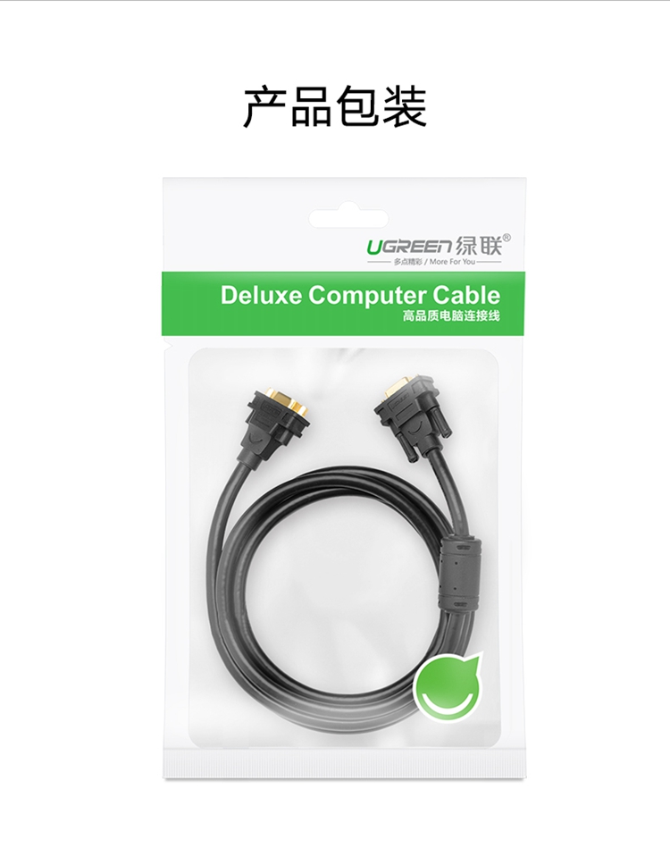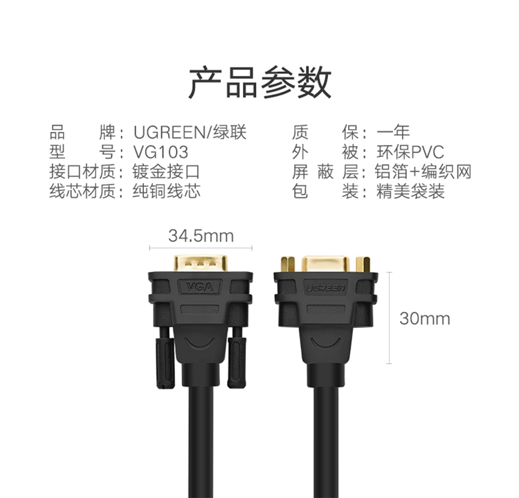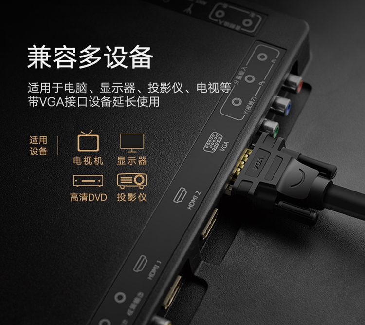 商品名称:绿联 UGREEN 30744VGA延长线3+6工程级VGA公对母连接线电脑显示器电视视频加长线2米黑色