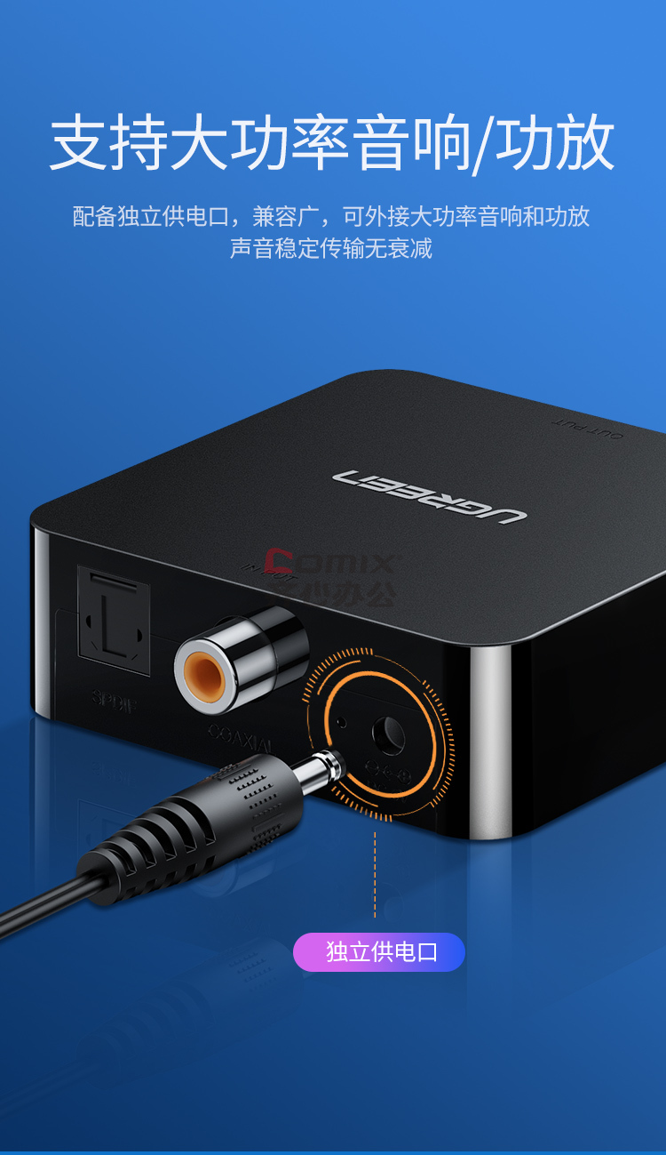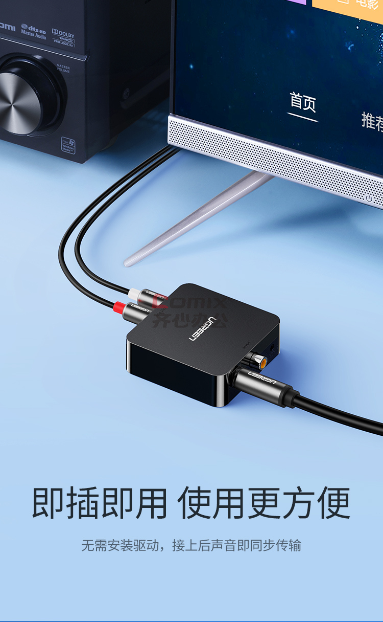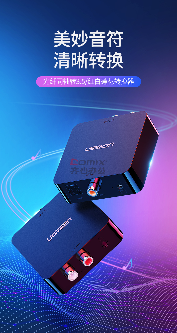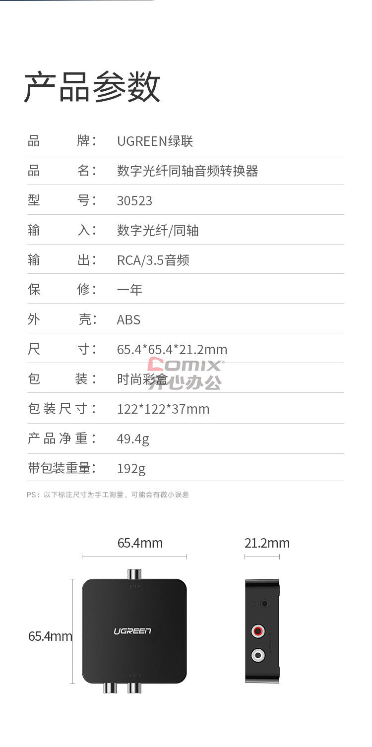 商品名称:绿联 UGREEN 30523 数字光纤同轴转模拟音频转换器 同轴转3.5模拟音频转接器 光纤转双莲花RCA左右声道