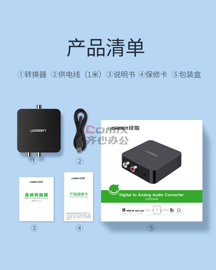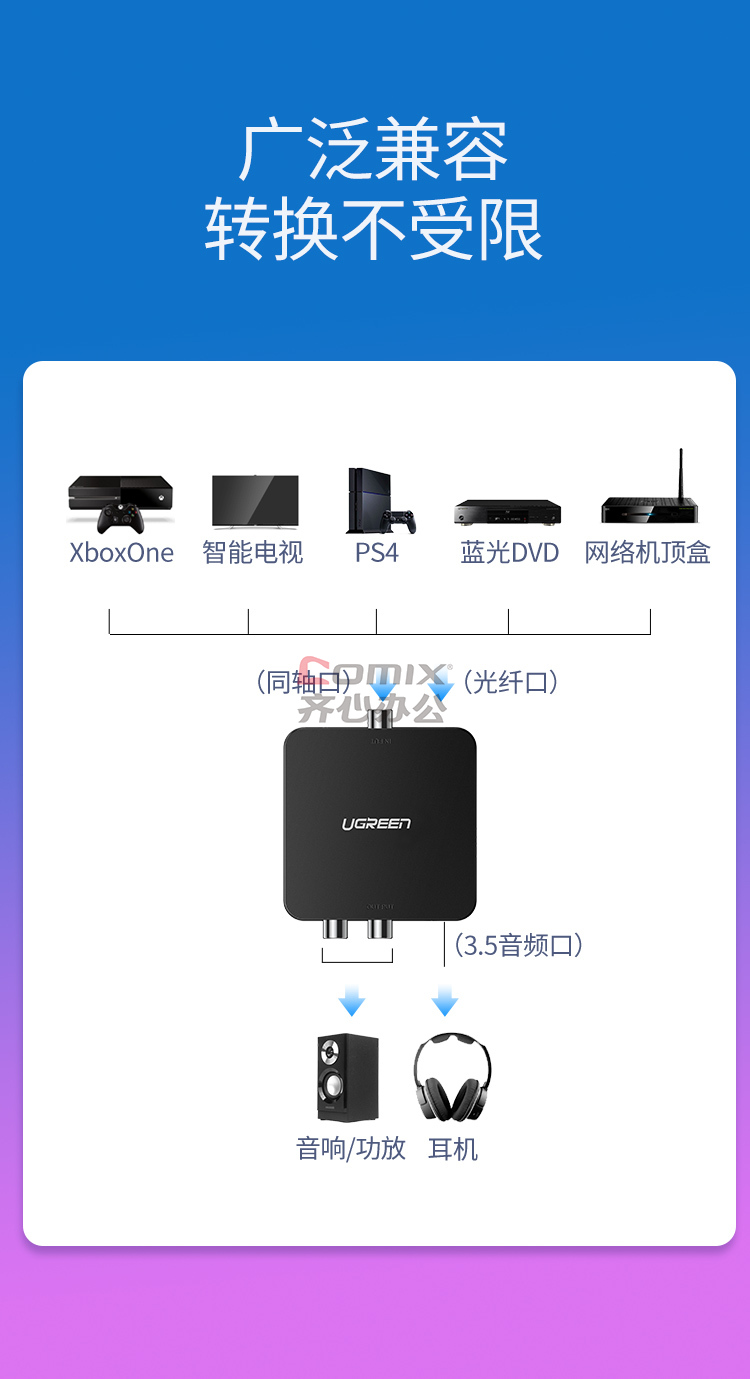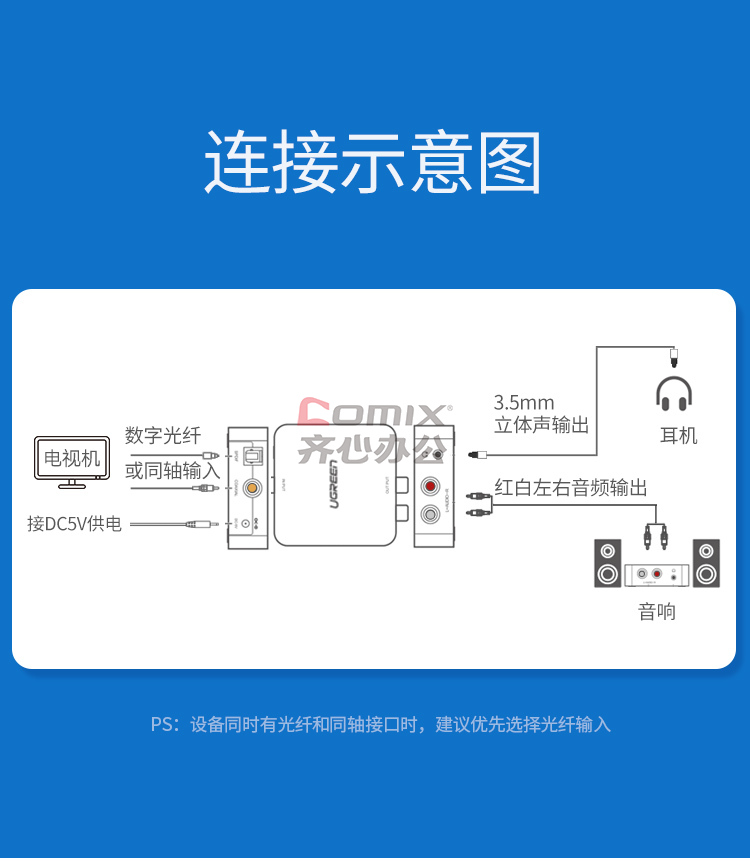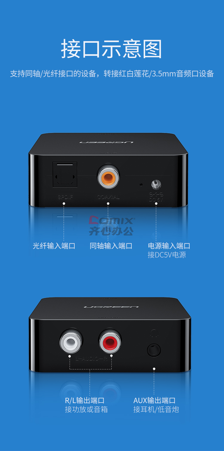 商品名称:绿联 UGREEN 30523 数字光纤同轴转模拟音频转换器 同轴转3.5模拟音频转接器 光纤转双莲花RCA左右声道