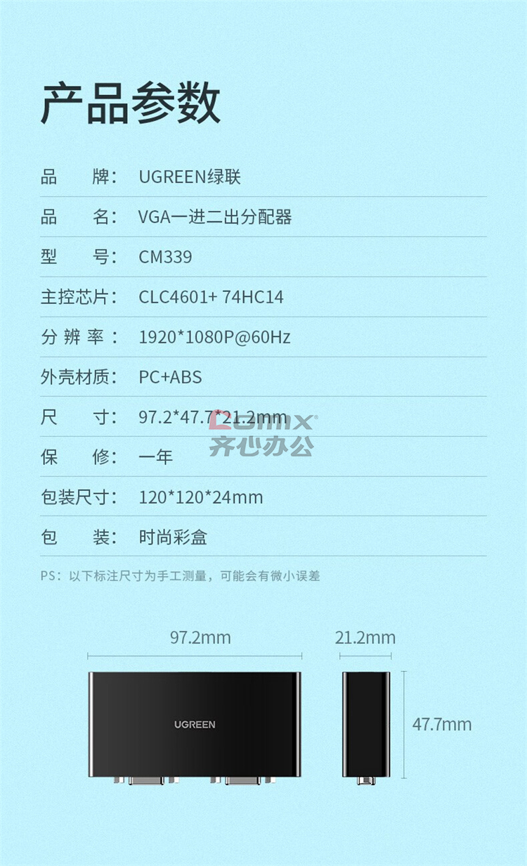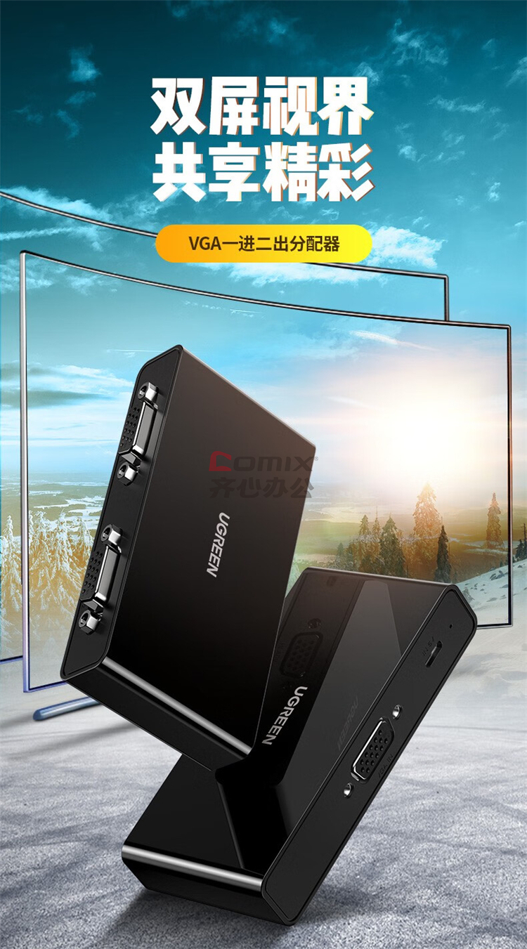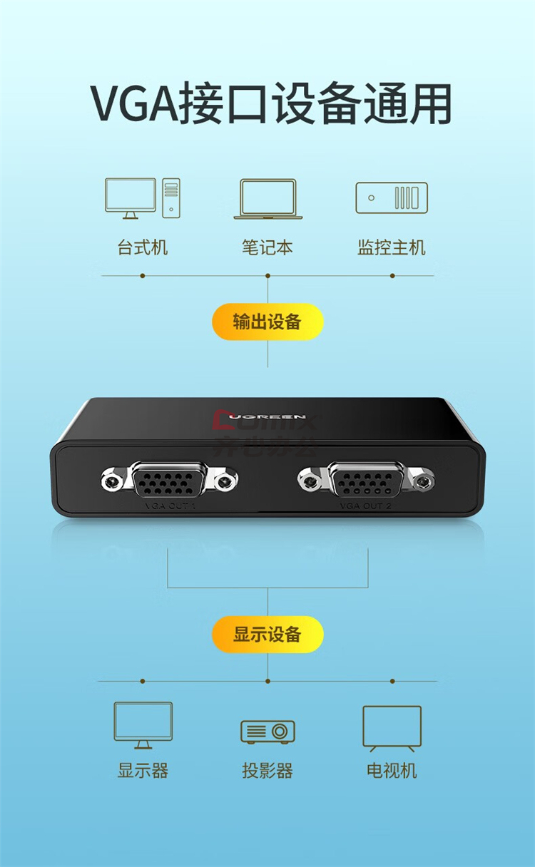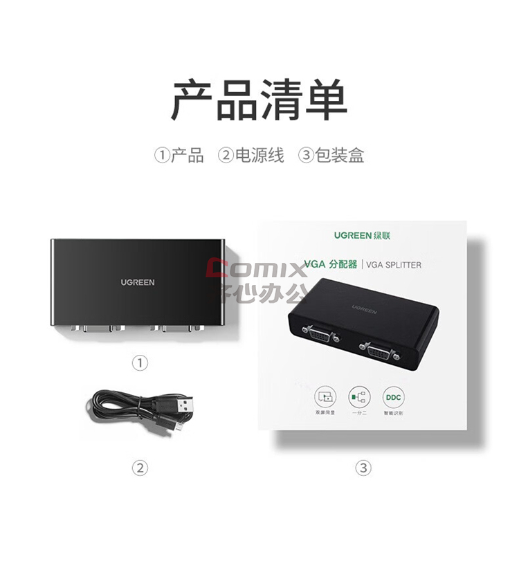 商品名称:绿联(UGREEN)CM339 VGA分配器一进二出笔记本显示器分屏器一分二 1080P高清视频转换器 80190