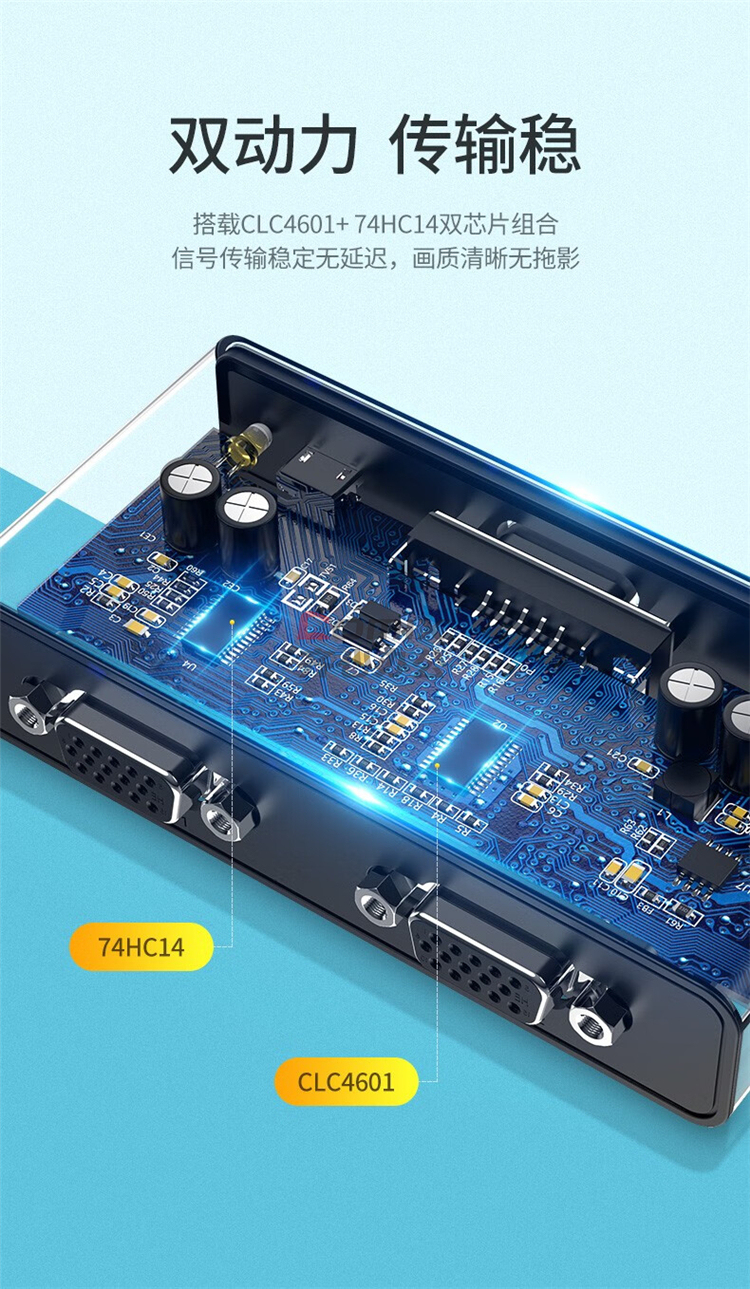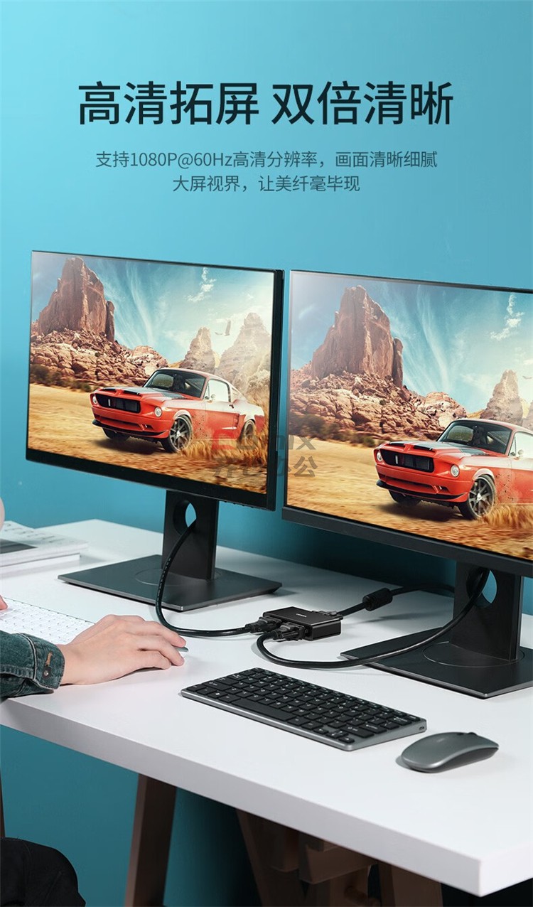 绿联(UGREEN)CM339 VGA分配器一进二出笔记本显示器分屏器一分二 1080P高清视频转换器 80190