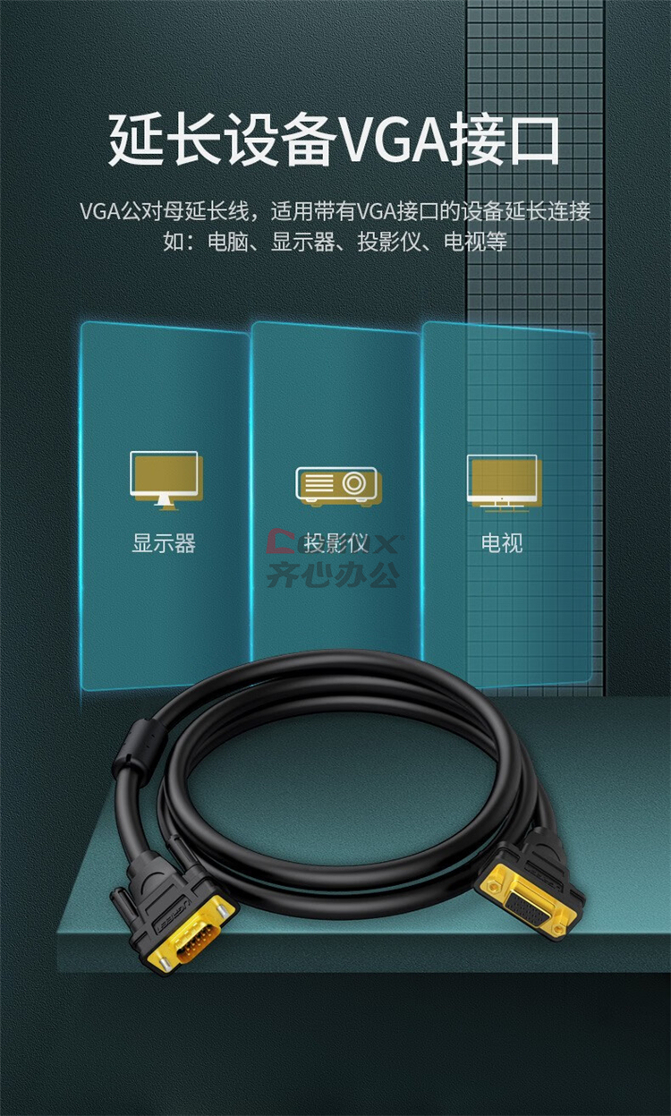商品名称:绿联(UGREEN)11642 VGA线高清工程级3+9线芯 公对公双磁环 视频连接线 12米