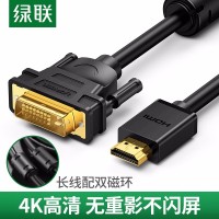 绿联 UGREEN 10164 HDMI转DVI转接线 DVI转HDMI线 双向转换高清连接线 电脑接投影仪视频转换线 8米 黑色
