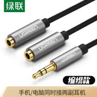 绿联(UGREEN)40454 3.5mm一分二音频线 1分2公对母情侣耳机线 AUX立体声分线器 手机音频转接头 黑(单位:根)