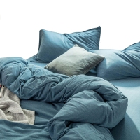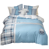 100%纯棉床单裸睡高级感套件加大双人被套枕套1.8m床 乔伊斯玫瑰蓝【新疆长绒棉】(单位:套)